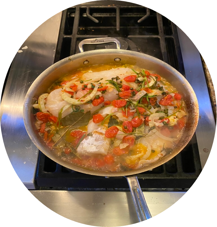 Pesce all’acqua Pazza (Southern Italian-Style Poached Fish) is a simple poached fish that can be made easily for any weeknight meal in 30 minutes or less. Acqua pazza, which means “crazy water” in Italian, is derived from how Southern Italian fishermen enjoyed their hearty meals after any day’s catch. My recipe calls for poaching a day’s “catch” (or otherwise fish purchased at my local market…) over water, seasoned with dry white wine, together with aromatics added from parsley, salt and pepper, bay leaf, and a touch of crushed red pepper for a bit of heat. This delicious Italian meal is easy to prepare with pantry staples on hand (tip: check out my post listing gluten free pantry staples to regularly have on hand) and just a few additional ingredients from your nearby market. I also want to mention, this is my first post of this blog.